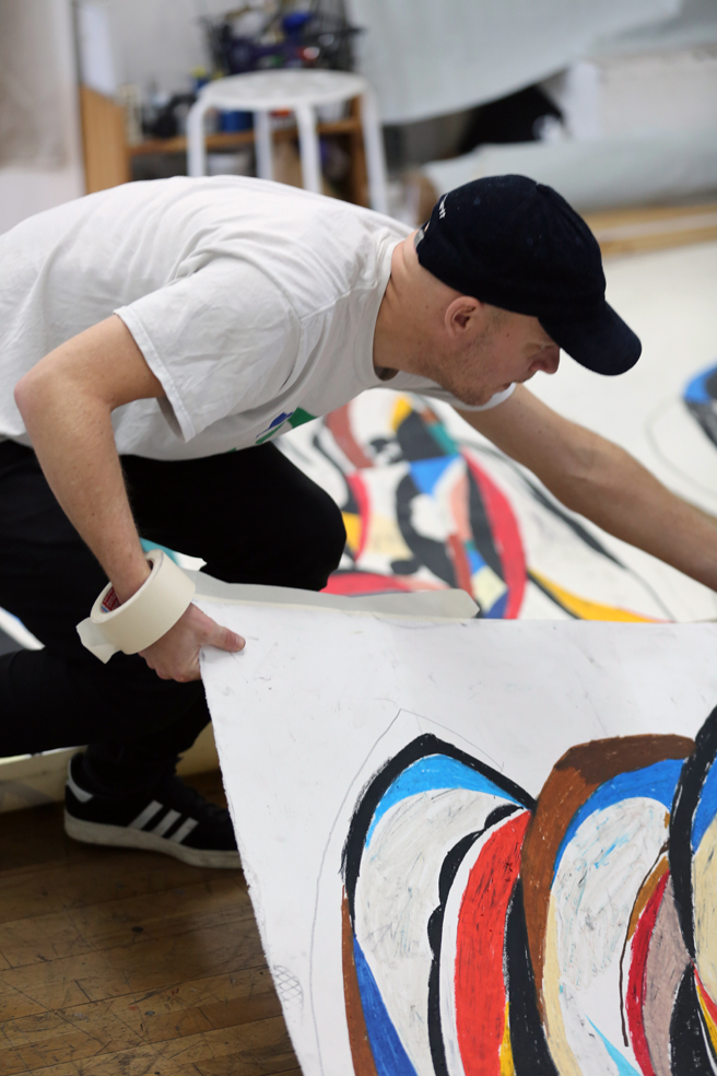 Ekta is a true jack-of-all-trades. His work exudes boldness and spans drawing, collage, painting, sculpture, textiles, and mural work, as well as animation, performance, installation, and music. Ekta is always exploring new materials and visual languages, treating failure as a way to learn. He merges abstraction, symbols, and silhouettes into a distinctive style that challenges conventions.